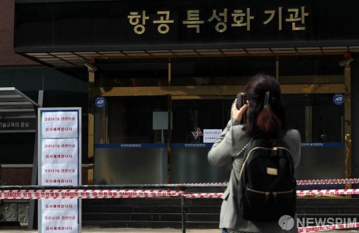 [서울=뉴스핌] 정일구 기자 = 20일 오전 재학생 중 신종 코로나바이러스 감염증(코로나19) 확진자가 나온 서울 영등포구 한국과학기술직업전문학교 입구에 임시 폐쇄 안내문이 붙어있다. 2020.05.20 mironj19@newspim.com