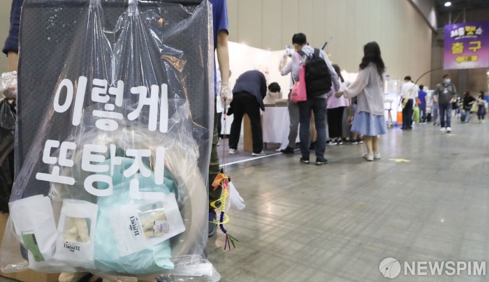 [고양=뉴스핌] 최상수 기자 = 29일 오후 경기도 고양시 일산서구 킨텍스에서 열린 '2020 서울캣쇼'에서 관람객들이 반려묘 관련 상품을 살펴보고 있다. '2020 서울캣쇼'는 금일부터 오는 31일까지 진행된다. 2020.05.29 kilroy023@newspim.com