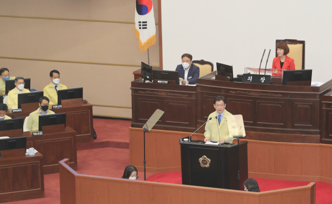 [창원=뉴스핌] 남경문 기자 = 김경수 경남지사는 2일 경남도의회 제374회 정례회 본회의에서 2020년 제2회 추가경정예산안 제안 설명에 나서 "코로나19 피해계층을 지원하고 민생경제를 살리는데 중점을 두고 편성했다"고 말했다.
