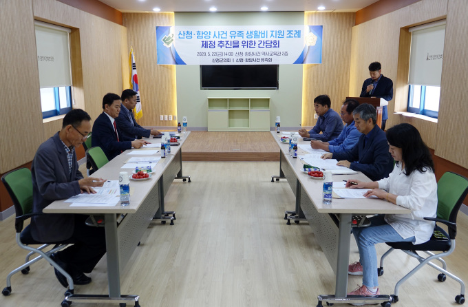 | 산청․함양사건 희생자 유족에 대한 생활보조비 지원에 관한 조례안 발의를 위한 간담회 장면 [사진=산청군의회] 2020.06.03 lkk02@newspim.com |