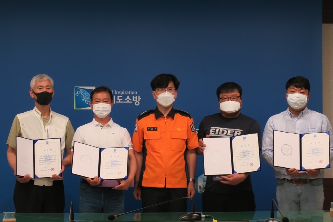 [광명=뉴스핌] 박승봉 기자 = 경기 광명소방서는 지난 5일 화재현장에서 초기소화활동으로 귀중한 생명을 지키고 재산을 보호하는데 기여한 민간 유공자 5명에게 표창장을 수여했다.