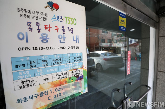 [서울=뉴스핌] 정일구 기자 = '양천구 탁구장' 관련 신종 코로나바이러스 감염증(코로나19) 확진자가 속출하고 있는 가운데 7일 오후 최근 확진자가 다녀간 것으로 알려진 서울 양천구 목동탁구클럽 앞에 적막감이 흐르고 있다. 2020.06.07 mironj19@newspim.com
