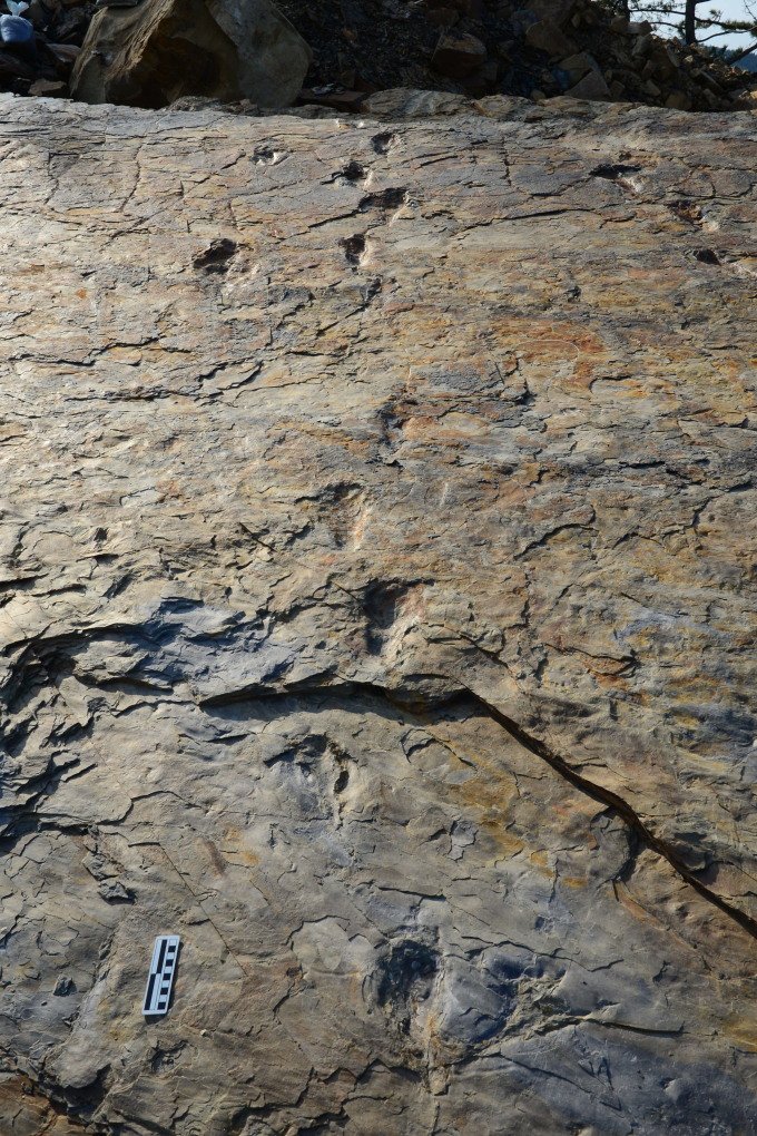 [진주=뉴스핌] 이경구 기자 = 사람처럼 두발로 걷는 원시악어 발자국 화석이 세계 최초로 경남 사천에서 나왔다.