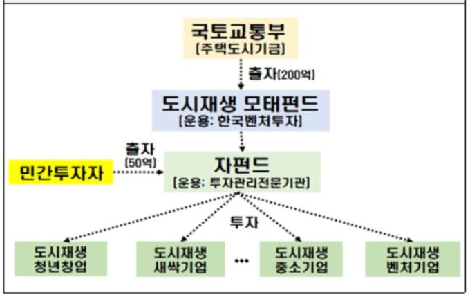제1호 도시재생 모태펀드는 주택도시기금 출자금 200억원과 민간출자금 50억원 등 총 250억 원의 규모로 조성됐다. 운용사는 앞으로 3년간 약 20개 내외의 유망 기업들을 찾아 투자하고, 4년간 투자금 회수 기간을 거쳐 총 7년간 펀드를 운용한다.
