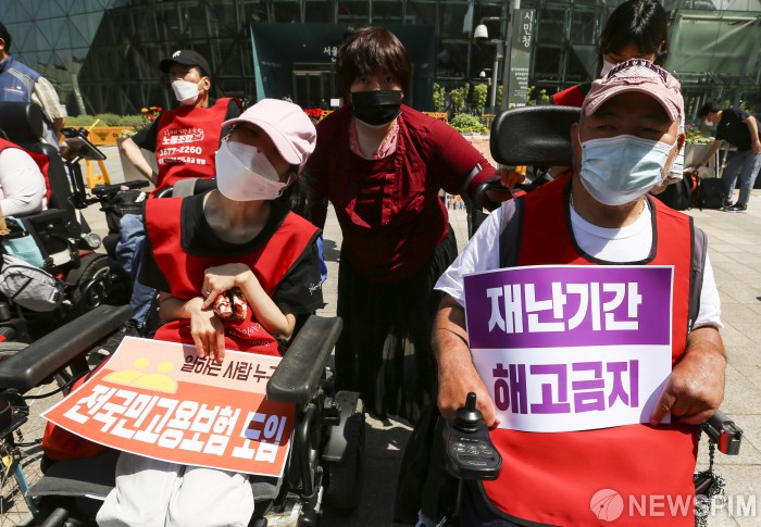 [서울=뉴스핌] 이한결 기자 = 15일 오전 서울 중구 서울특별시청 앞에서 열린 ‘2020 서울지역 차별철폐대행진 돌입 투쟁 선포 기자회견’에서 참석자들이 손 팻말을 들고 있다. 2020.06.15 alwaysame@newspim.com