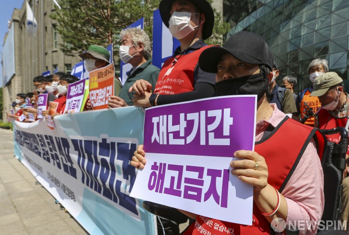 [서울=뉴스핌] 이한결 기자 = 15일 오전 서울 중구 서울특별시청 앞에서 열린 ‘2020 서울지역 차별철폐대행진 돌입 투쟁 선포 기자회견’에서 참석자들이 손 팻말을 들고 있다. 2020.06.15 alwaysame@newspim.com