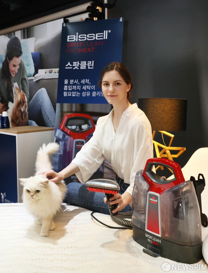 [서울=뉴스핌]한 모델이 18일 게이트비전 일산 사옥에서 열린 미국 청소기 비쎌(Bissell)의 국내 론칭 행사에서 다용도 습식 스팟클린 청소기 제품을 소개 하고 있다. [사진= 게이트비전 ] 2020.06.18 photo@newspim.com