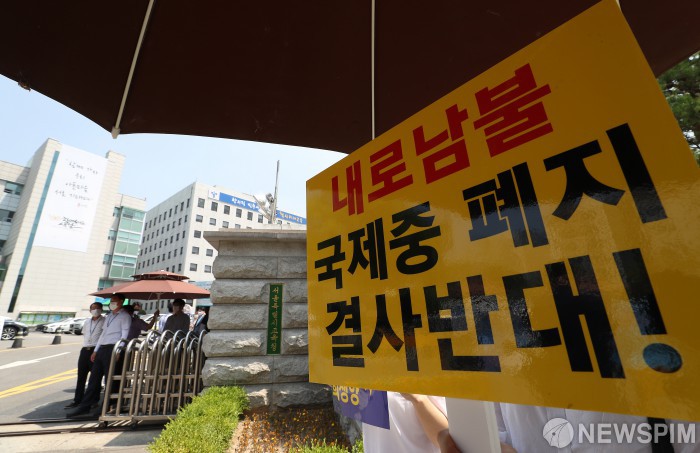 [서울=뉴스핌] 정일구 기자 = 대원·영훈국제중 학부모들이 22일 오전 서울 종로구 서울시교육청 앞에서 대원·영훈국제중 폐지 반대 촉구 집회를 하고 있다. 2020.06.22 mironj19@newspim.com