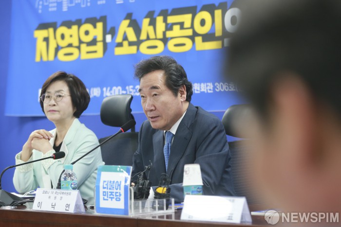 [서울=뉴스핌] 이형석 기자 = 이낙연 더불어민주당 코로나19 국난극복위원장이 23일 오후 서울 여의도 국회 의원회관에서 열린 자영업-소상공인 TF토론회에서 모두발언을 하고 있다. 2020.06.23 leehs@newspim.com