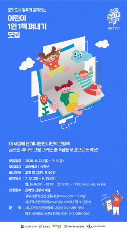청주시가 2007년부터 성인을 대상으로 진행해온 '1인 1책 펴내기' 프로그램의 확장판으로, 초등학교 1~6학년을 대상으로 한 그림책 만들기 교육 프로그램의 참가자를 오는 7월 3일까지 모집한다.