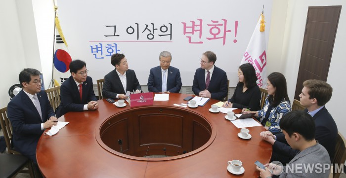 [서울=뉴스핌] 이형석 기자 = 김종인 미래통합당 비상대책위원장이 26일 오전 서울 여의도 국회에서 슈테판 잠제 아데나워재단 소장을 면담하고 있다. 2020.06.26 leehs@newspim.com