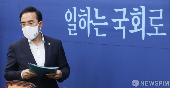[서울=뉴스핌] 최상수 기자 = 박홍근 국회 예산결산특별위원회 더불어민주당 간사가 3일 오전 서울 여의도 국회에서 열린 추경심사 관련 기자간담회에 참석하고 있다. 2020.07.03 kilroy023@newspim.com