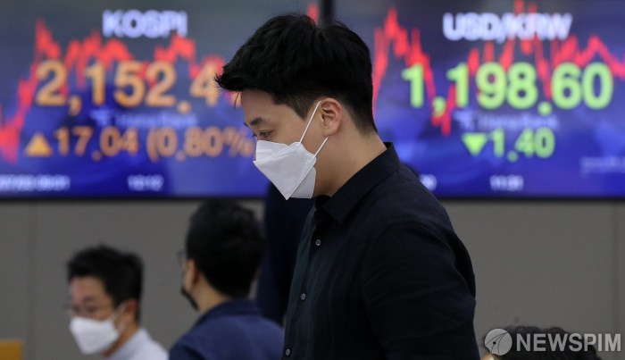[서울=뉴스핌] 정일구 기자 = 3일 코스피 지수는 전 거래일 대비 17.04포인트(0.80%) 오른 2152.41에 마감했다. 코스닥 지수는 전날보다 9.63포인트(1.30%) 상승한 752.18로 종료했다. 원·달러 환율은 전 거래일보다 1.4원 내린 1198.6원에 장을 마쳤다. 이날 오후 서울 중구 하나은행 딜링룸에서 딜러들이 업무를 보고 있다. 2020.07.03 mironj19@newspim.com