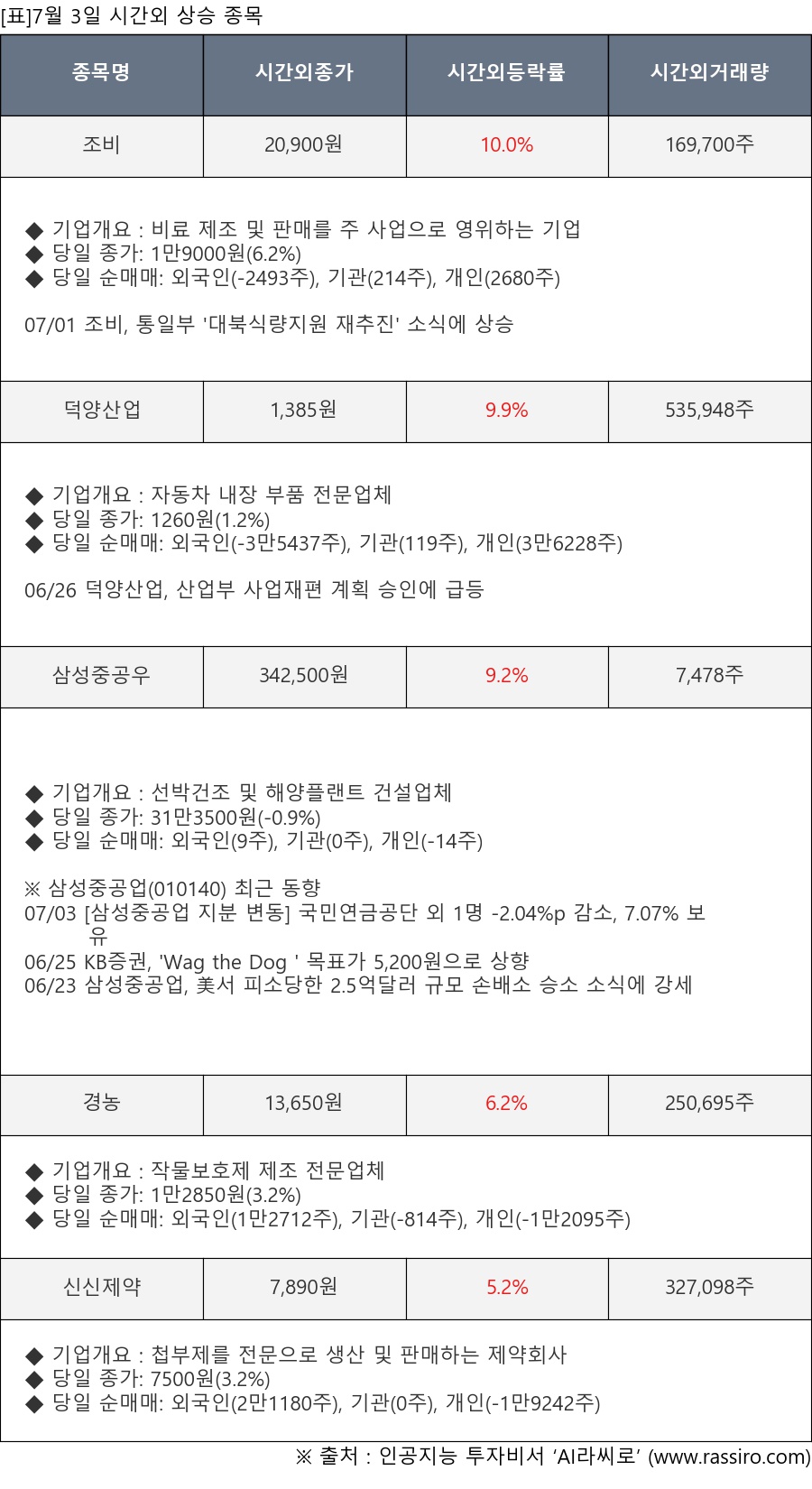※ 관련 종목: 조비, 덕양산업, 삼성중공우, 경농, 신신제약