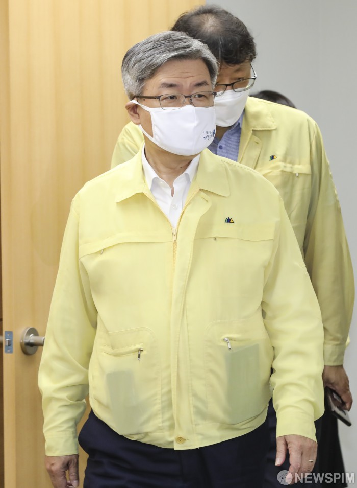 [서울=뉴스핌] 이한결 기자 = 이재갑 고용노동부 장관이 7일 오전 서울 종로구 경제사회노동위원회에서 열린 비상경제 중앙대책본부 ‘제7차 고용위기 대응반 회의’에 참석하고 있다. 2020.07.07 alwaysame@newspim.com