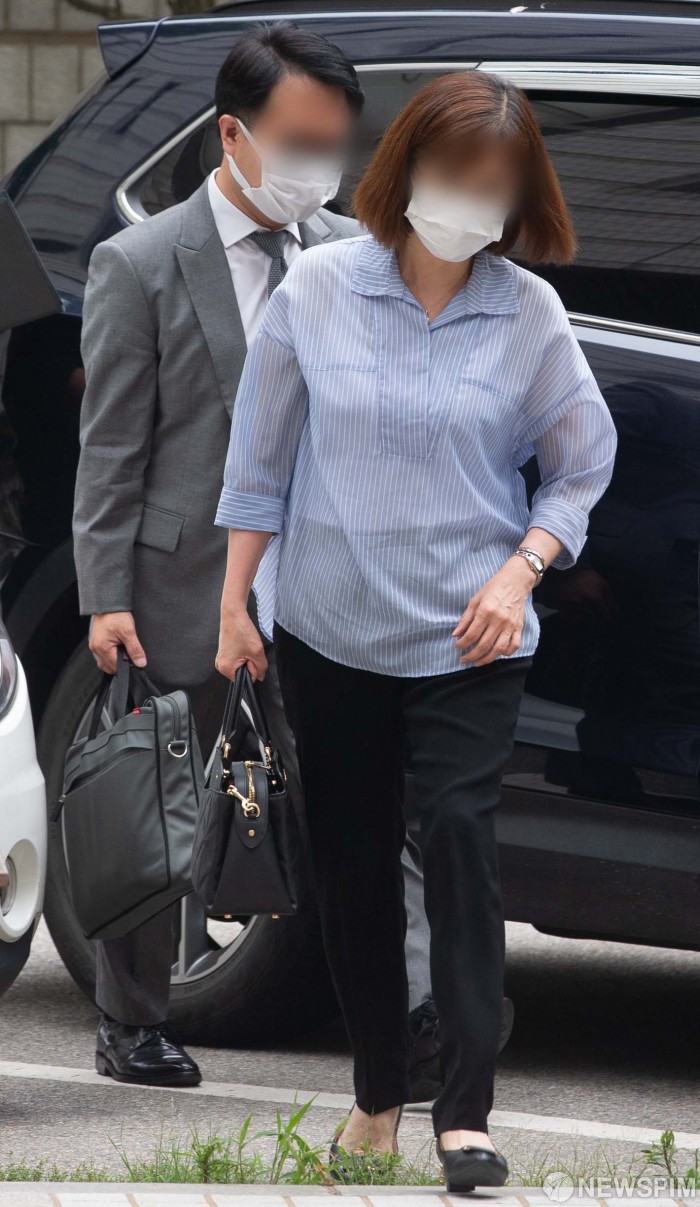 [서울=뉴스핌] 윤창빈 기자 = '대규모 펀드 환매 중단 사태'의 옵티머스 자산운용과 관련된 H법무법인 소속 윤모 변호사와 송모 펀드 운용이사가 7일 오전 서울 서초구 서울중앙지방법원에서 열린 구속 전 피의자 심문(영장실질심사)에 출석하고 있다. 2020.07.07 pangbin@newspim.com