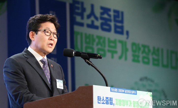 [서울=뉴스핌] 백인혁 기자 = 조명래 환경부 장관이 7일 오후 서울 강남구 코엑스 아셈블룸홀에서 열린 '탄소중립 지방정부 실천연대' 발족식에서 축사를 하고 있다. 탄소중립 지방정부 실천연대는 포스트 코로나 시대 기후 위기 대응을 위한 지방자치단체의 연합이다. 2020.07.07 dlsgur9757@newspim.com