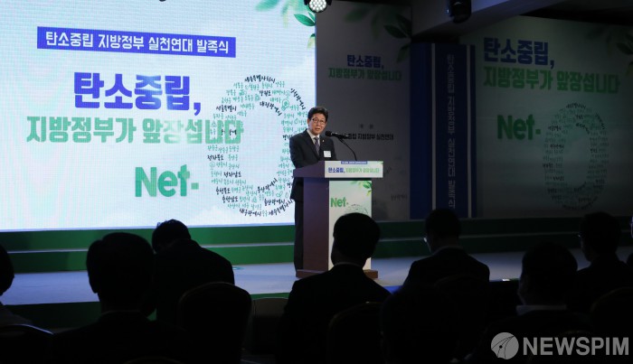 [서울=뉴스핌] 백인혁 기자 = 조명래 환경부 장관이 7일 오후 서울 강남구 코엑스 아셈블룸홀에서 열린 '탄소중립 지방정부 실천연대' 발족식에서 축사를 하고 있다. 탄소중립 지방정부 실천연대는 포스트 코로나 시대 기후 위기 대응을 위한 지방자치단체의 연합이다. 2020.07.07 dlsgur9757@newspim.com