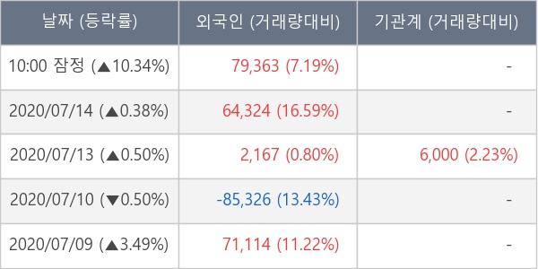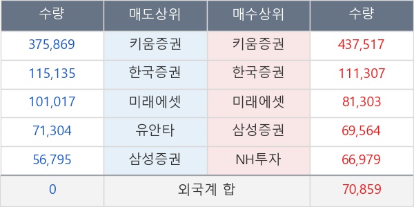 [표] 외국인ㆍ기관 순매매량 (단위 주)