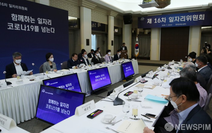 [서울=뉴스핌] 백인혁 기자 = 김용기 일자리위원회 부위원장이 22일 오전 서울 중구 한국프레스센터에서 열린 제16차 일자리위원회에서 모두발언을 하고 있다. 2020.07.22 dlsgur9757@newspim.com