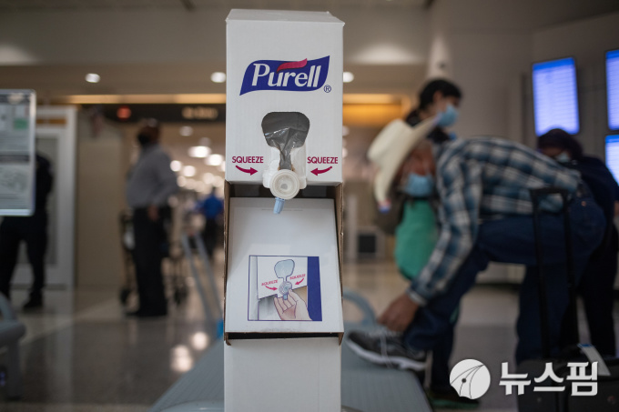| [휴스턴 로이터=뉴스핌] 최원진 기자= 미국 텍사스주의 조지 부시 인터콘티넨털 공항에 비치된 손세정제. 2020.07.21 wonjc6@newspim.com |