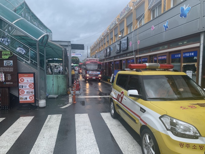 [광주=뉴스핌] 전경훈 기자 = 광주 서부소방서는 24일 양동시장 일원에서 '소방차 길 터주기' 훈련을 실시했다.