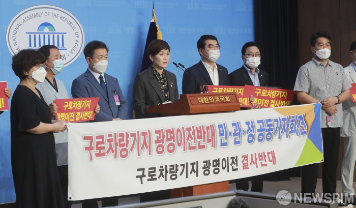[서울=뉴스핌] 이형석 기자 = 임오경 더불어민주당 의원이 31일 오전 서울 여의도 국회 소통관에서 구로차량기지 관련 민·관·정 공동기자회견을 열고 있다. 2020.07.31 leehs@newspim.com