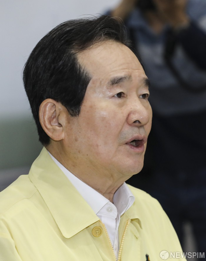 [서울=뉴스핌] 이한결 기자 = 정세균 국무총리가 3일 오전 서울 종로구 정부서울청사에서 열린 집중호우 대처상황 점검회의를 주재하고 있다. 2020.08.03 alwaysame@newspim.com