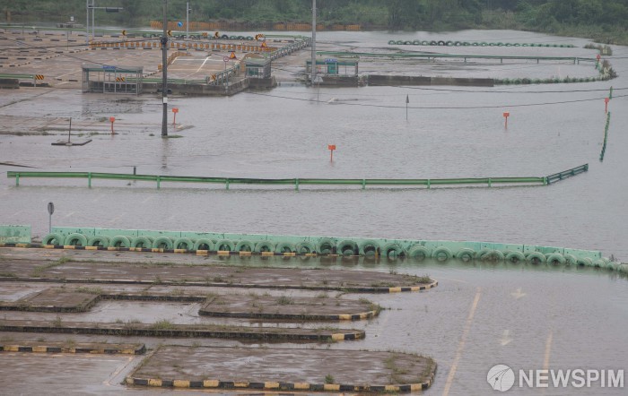 [서울=뉴스핌] 윤창빈 기자 = 서울 등 수도권에 내린 비로 인해 높아진 한강 수위로 4일 오전 서울 송파구 강남운전면허 기능시험장이 물에 잠겨 있다. 2020.08.04 pangbin@newspim.com
