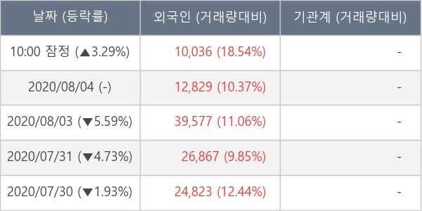 [표] 외국인ㆍ기관 순매매량 (단위 주)