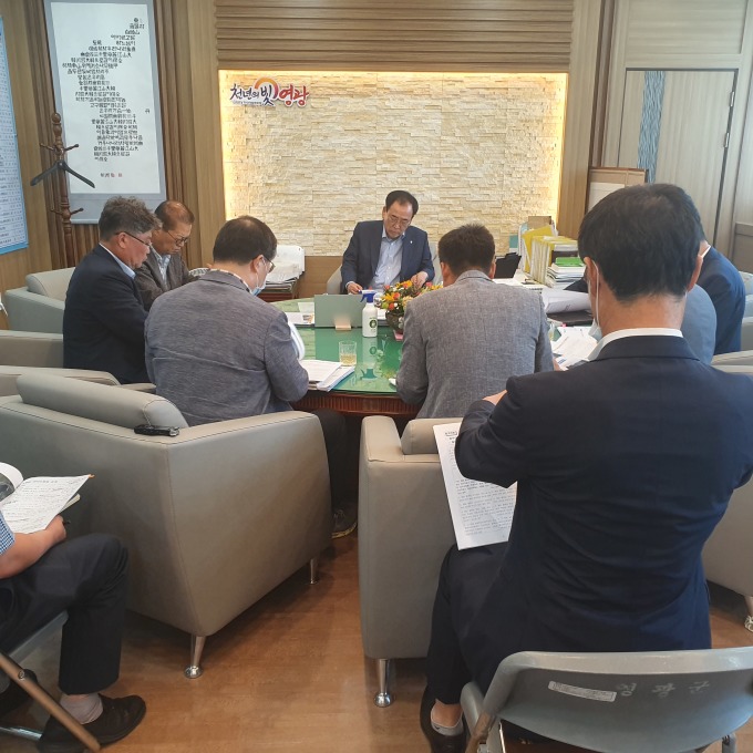 | 전남 영광군은 군청 군수실에서 장세일, 이장석 전남도의원을 초청하여 관계공무원 등이 참석한 가운데 정책간담회를 개최했다.[사진=영광군] 2020.08.05 ej7648@newspim.com |