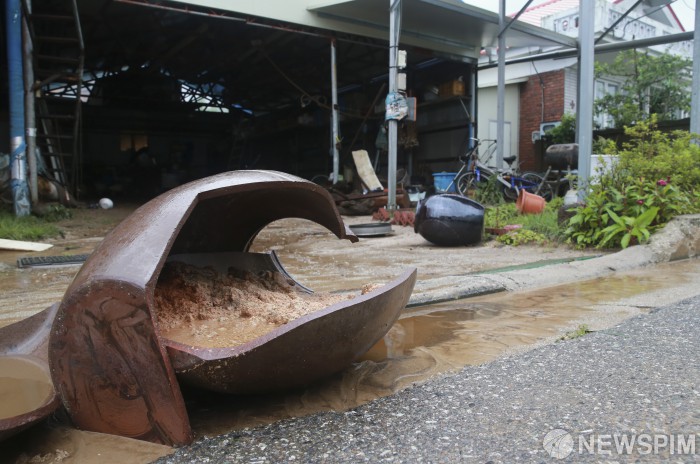 [철원=뉴스핌] 이형석 기자 = 6일 오전 강원 철원군 한탄강이 범람해 물에 잠겼던 이길리 마을에 적막감이 감돌고 있다. 2020.08.06 leehs@newspim.com