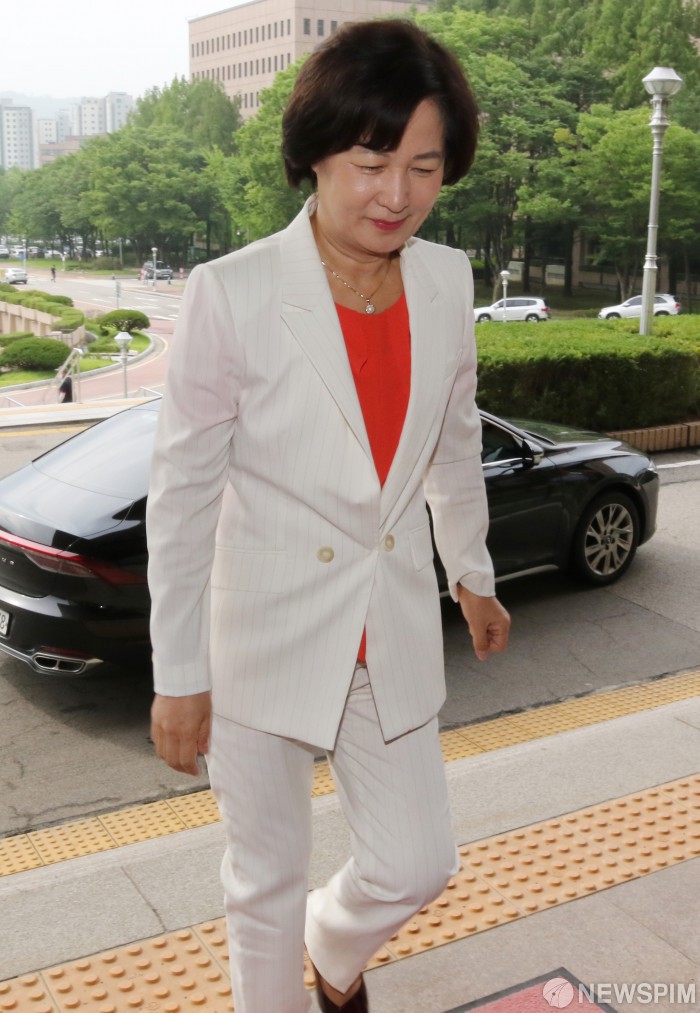 [과천=뉴스핌] 백인혁 기자 = 법무부가 검찰 고위 간부 인사내용 발표를 예고한 7일 오전 추미애 법무부 장관이 경기 과천시 정부과천청사에 출근하고 있다. 2020.08.07 dlsgur9757@newspim.com