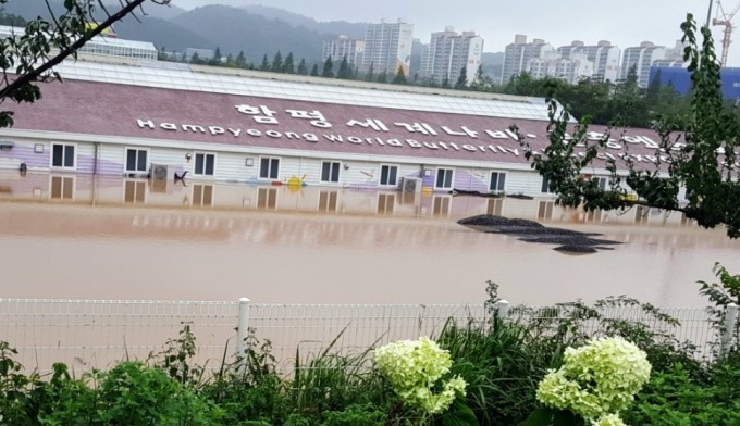 함평엑스포공원도 집중호우를 피해가지 못했다. 엑스포공원 내 시설물과 작물이 침수됐다. 아직까지 인명 피해는 없는 것으로 알려졌다.