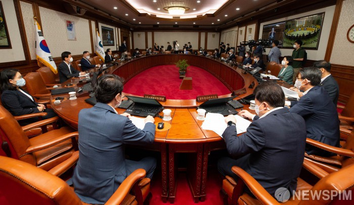 [서울=뉴스핌] 윤창빈 기자 = 18일 오전 서울 종로구 정부서울청사에서 국무회의가 열리고 있다. 2020.08.18 pangbin@newspim.com