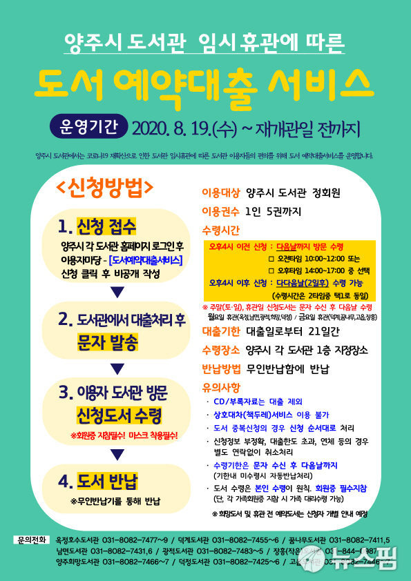 | 도서예약 대출서비스 홍보 포스터.[사진=양주시] 2020.08.20 lkh@newspim.com |