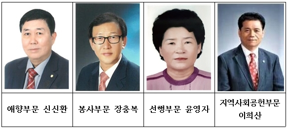애향부문 수상자로 선정된 신신환(대청동)씨는 32년 동안 중구에 거주하면서 1992년부터 대청동 방위협의회 위원으로 활동하며 남다른 애향심과 봉사정신으로 지역방위 수호 및 지역사회 발전을 위해 힘썼다. 향토방위와 생활안전 활동을 정기적으로 실천하고, 불우이웃돕기 및 사회봉사에도 적극 참여해왔다.