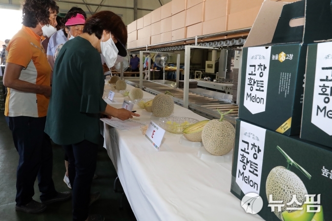 | 고창 멜론 시식평가 모습[사진=고창군청] 2020.08.27 lbs0964@newspim.com |