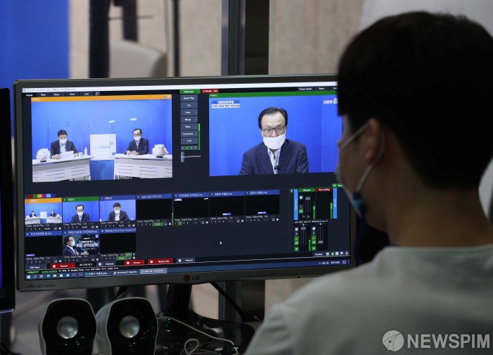 [서울=뉴스핌] 국회사진취재단 = 이해찬 더불어민주당 대표가 28일 오후 서울 여의도 더불어민주당사에서 온라인 퇴임 기자간담회를 하고 있다. 2020.08.28 photo@newspim.com