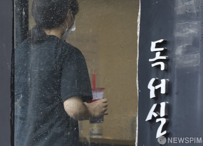 [서울=뉴스핌] 이한결 기자 = 사회적 거리두기 2단계를 한주 더 연장하기로 한 28일 오후 서울 동작구 노량진역 인근의 독서실에 한 시민이 들어서고 있다. 박능후 중앙재난안전대책본부(중대본) 1총괄조정관(보건복지부 장관)은 코로나19 정례브리핑을 통해 “300인 이상 학원은 집합금지가 적용중이다. 이에 더해 오는 6일 밤12시까지 300인 이하 학원과 독서실, 스터디카페에도 집합금지가 적용돼 비대면 서비스 외에는 시설 운영을 중단하게 된다”고 밝혔다. 2020.08.28 alwaysame@newspim.com
