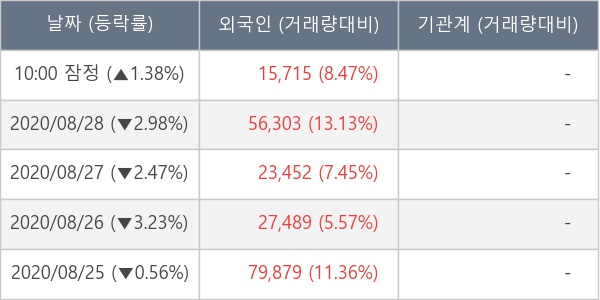 [표] 외국인ㆍ기관 순매매량 (단위 주)
