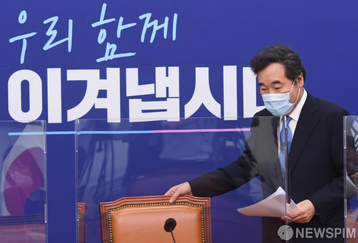 [서울=뉴스핌] 최상수 기자 = 이낙연 더불어민주당 신임 당대표가 31일 오후 서울 여의도 국회 당대표실에서 열린 기자간담회에 참석하고 있다. 2020.08.31 kilroy023@newspim.com