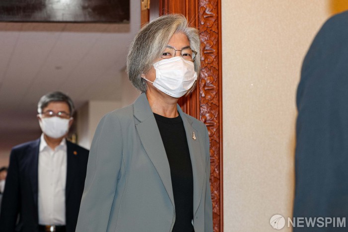 [서울=뉴스핌] 이한결 기자 = 강경화 외교부 장관이 1일 오전 서울 종로구 정부서울청사에서 열린 국무회의에 입장하고 있다. 2020.09.01 alwaysame@newspim.com