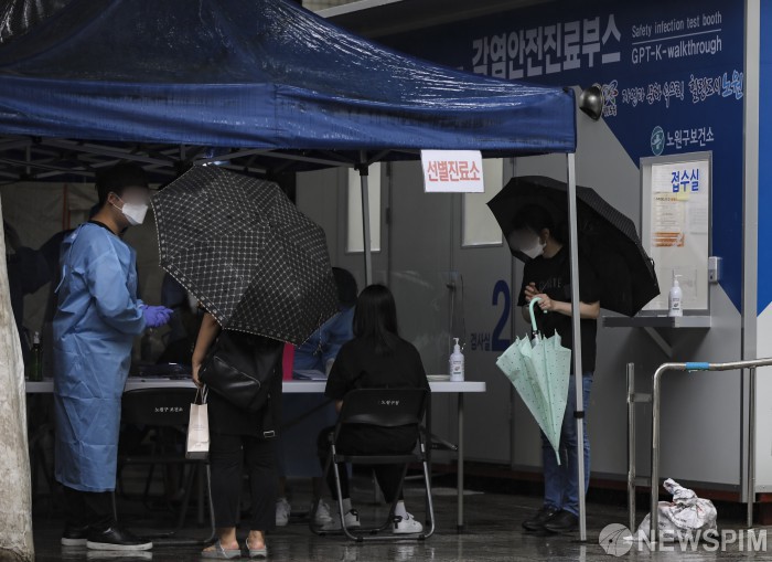 [서울=뉴스핌] 이한결 기자 = 2일 오후 서울 노원구는 상계1동 소재의 브니엘 기도원에서 코로나19 확진자가 10명 발생했다고 밝혔다. 앞서 지난 1일 의정부시는 송산1동에 사는 A씨 부부가 코로나19 확진 판정을 받았다고 밝힌 가운데 A씨는 노원구의 가정 예배 확진자와 접촉한 것으로 확인됐다. 이날 오후 노원구 보건소에 차려진 선별진료소에서 시민들이 진료를 받고 있다. 2020.09.02 alwaysame@newspim.com