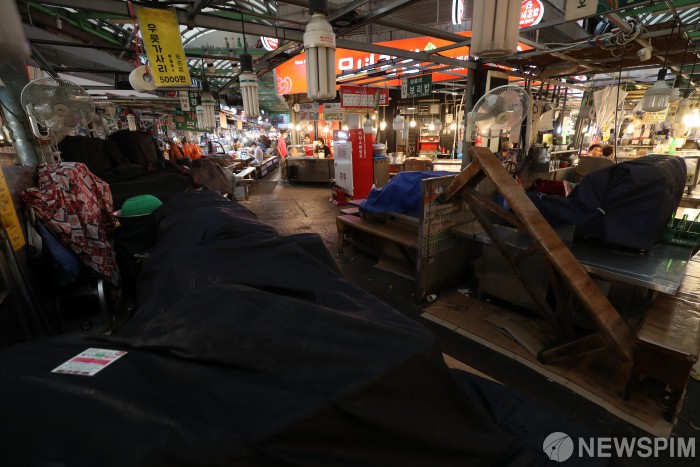 [서울=뉴스핌] 정일구 기자 = 신종 코로나바이러스 감염증(코로나19) 확진자가 늘어나면서 서울시가 '천만 시민 멈춤 주간'을 지정한 가운데 2일 오후 서울 종로구 광장시장 일대가 한산한 모습을 보이고 있다. 2020.09.02 mironj19@newspim.com