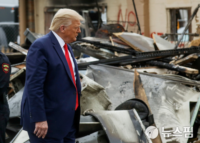 | [커노샤 로이터=뉴스핌] 이영기 기자= 2일(현지시간) 도널드 트럼프 미국 대통령은 최근 흑인사망 사건으로 시위가 격렬한 위스콘신주 커노샤를 방문했다. 2020.09.03 007@newspim.com |