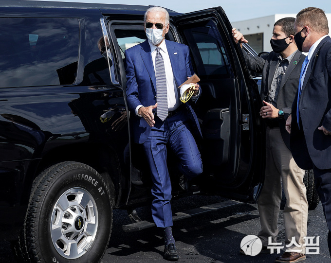 | [윌밍턴 로이터=뉴스핌] 김민정 기자 = 3일(현지시간) 미국 민주당 대선후보 조 바이든 전 부통령이 위스콘신주 커노샤로 떠나기 위해 차에서 내리고 있다. 2020.09.03 mj72284@newspim.com |