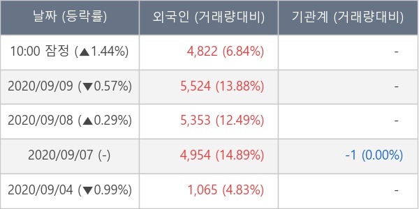[표] 외국인ㆍ기관 순매매량 (단위 주)