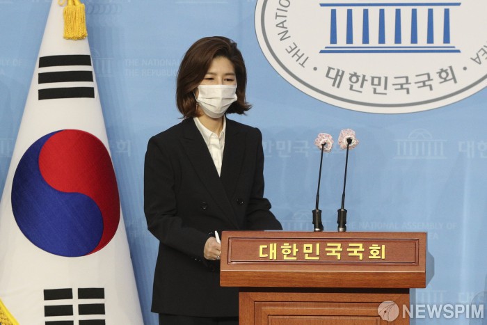 [서울=뉴스핌] 이형석 기자 = 김예령 국민의힘 신임 대변인이 10일 오후 서울 여의도 국회 소통관에서 취임인사를 하기 위해 단상으로 향하고 있다. 2020.09.10 leehs@newspim.com
