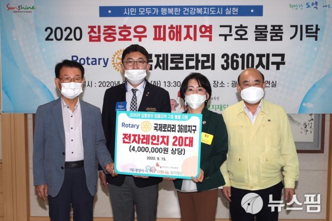 [광양=뉴스핌] 박우훈 기자 = 국제로타리3610지구는 15일 400만원 상당의 가전제품을 (재)광양시사랑나눔복지재단에 기탁했다.